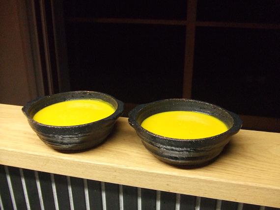 グラタン皿だけど、かぼちゃスープ~♪