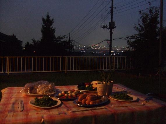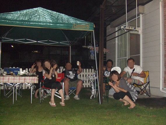 庭でBBQをしながらの花火見物。