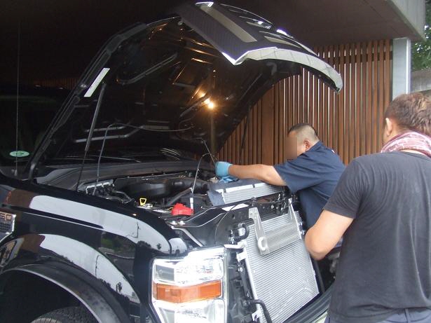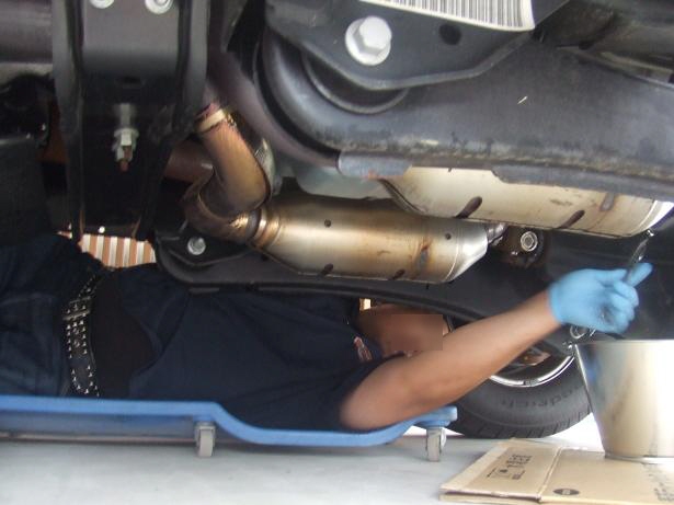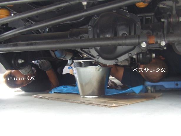 オイル交換をしてくれているペスサンク父を覗いているんです。