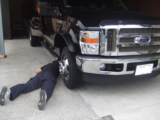 試しにmamaも車の下に入ってみましたが、怖い~!!