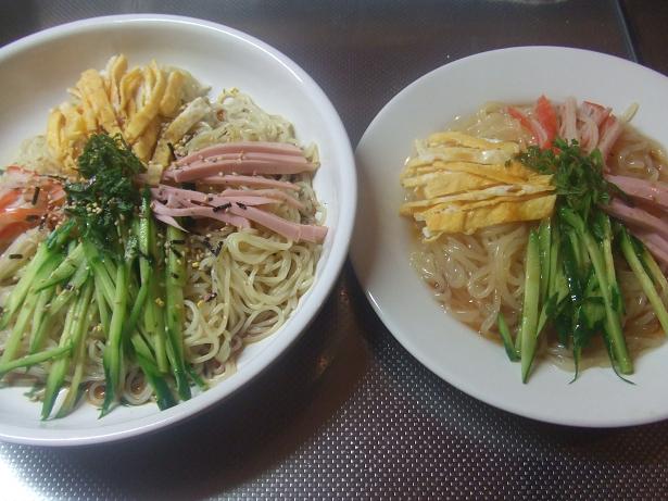 普通の冷し中華と、こんにゃく冷し中華を作ってみました。