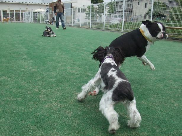uzullaはボストンテリアくんと気が合ったみたいで、追いかけっこしてました。