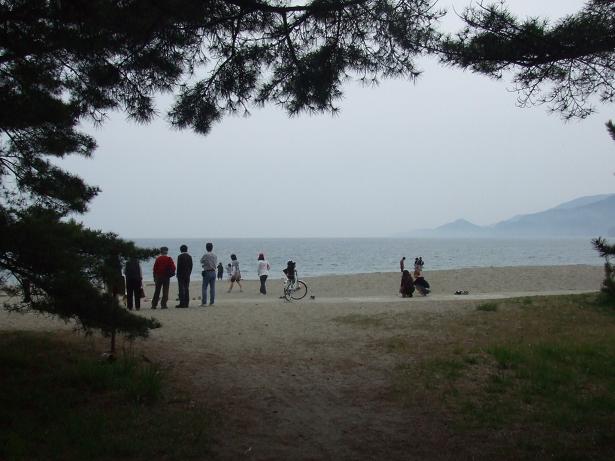 曇り空でしたが、気温は高かったので、足だけ海に入っている人も・・・。