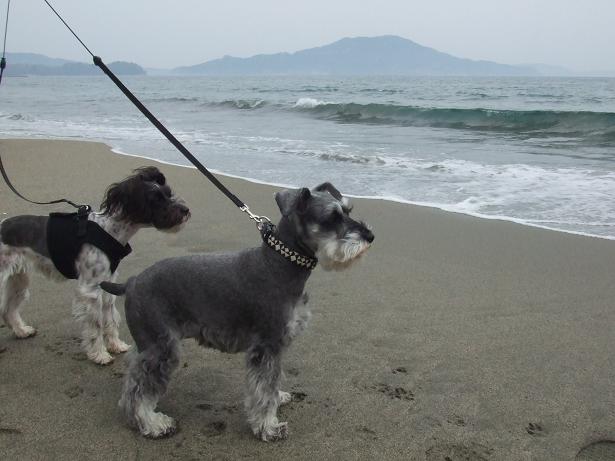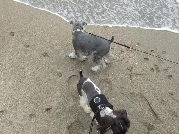 wasabiさん、7歳にして初めての砂浜海岸!