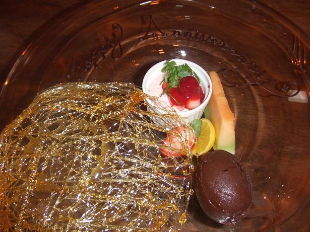 デザートは「Happy Anniversary」のメッセージ入りでした。