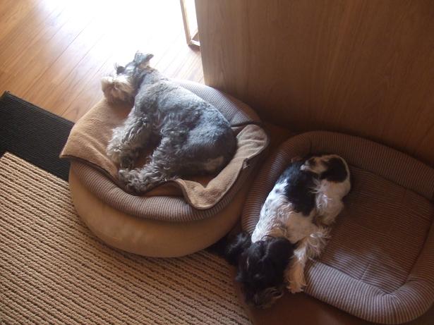 20時には並んでスヤスヤ寝ちゃってました。