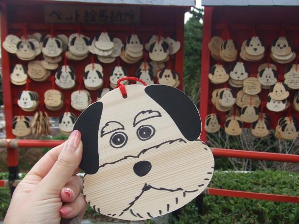 ここではペット絵馬があって、自分達で顔を書くことが出来るんです。