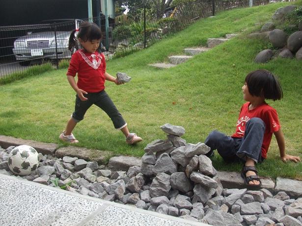 じゃ、庭で遊ぶ~?