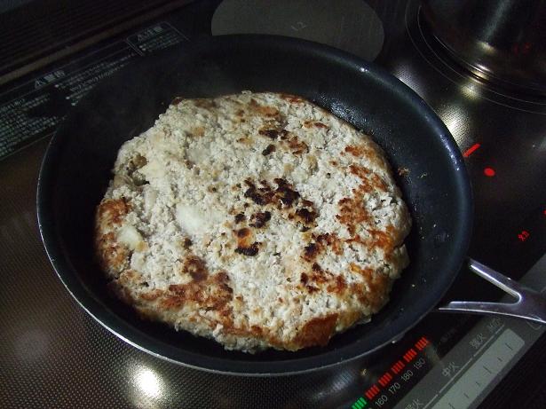 フライパンいっぱいの大きさで豆腐ハンバーグを焼きました。