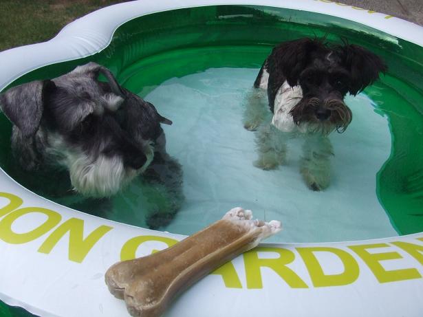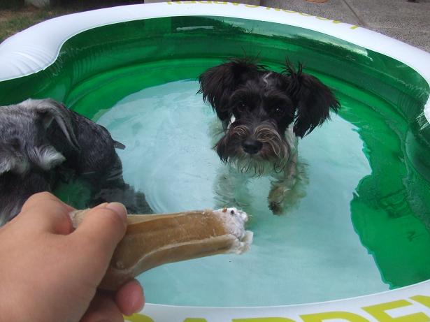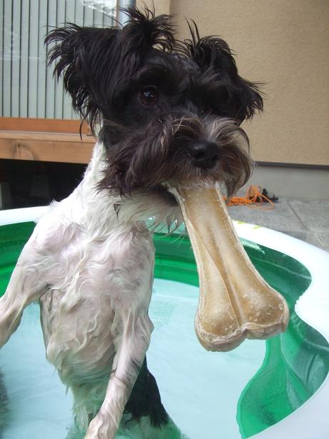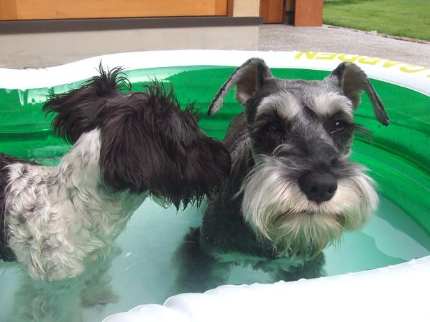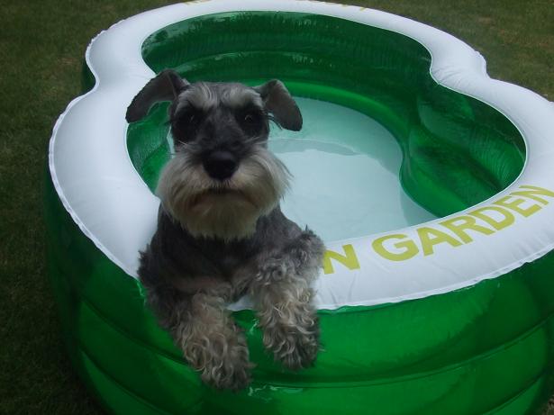 プールは、お昼休みに水を張ると、mamaの仕事が終わる頃にはいい感じの水温に・・・。