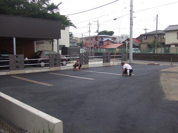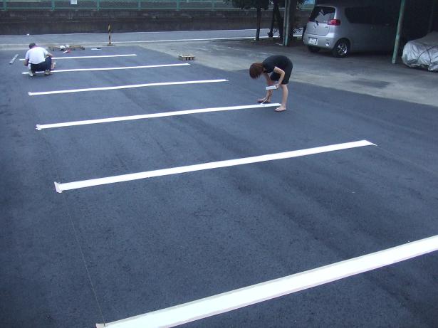 その駐車場に白線を引くのを、仕事が終わってから手伝ったからです。