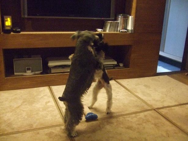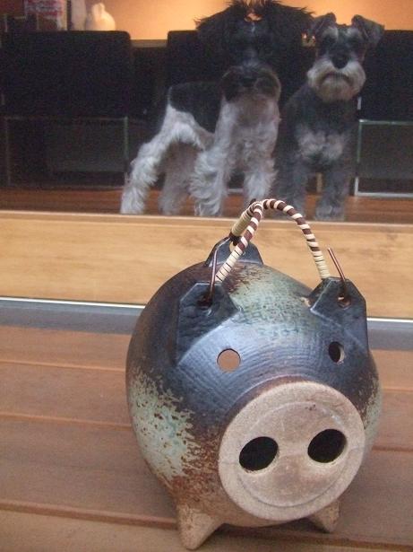 ウ~たん・・・このブタさんには吠えないんだね。(笑)
