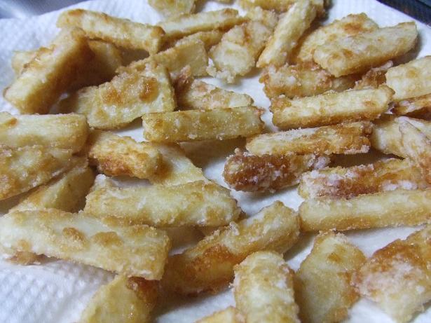 (短冊切りにして片栗粉をまぶして油で揚げました)