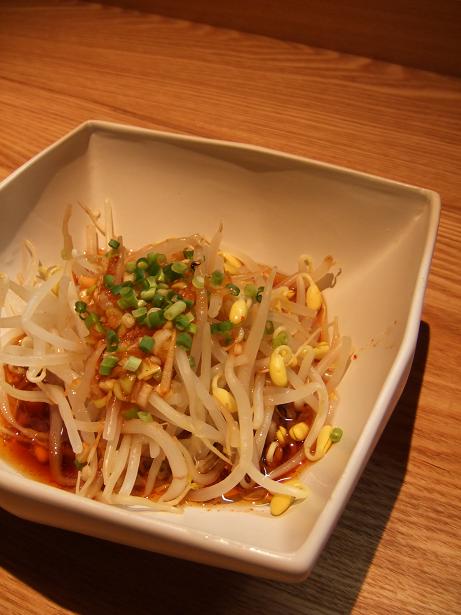 茹でた「もやし」に葱ソースをかけたもの。