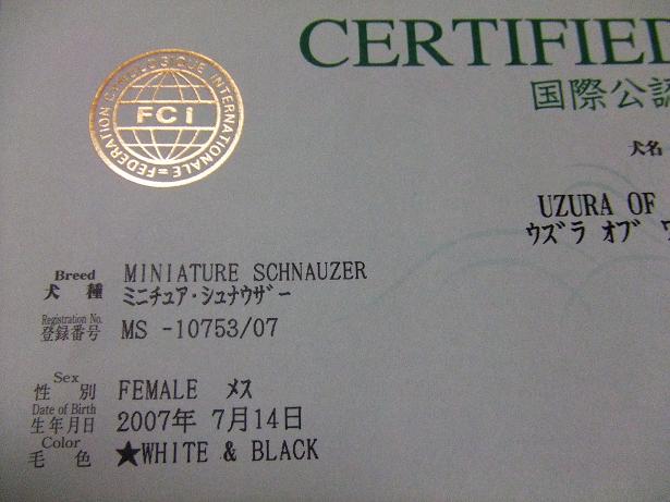 uzullaの血統書が届きました。