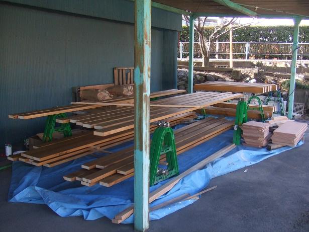 ウッドデッキ材にペンキを塗りました。