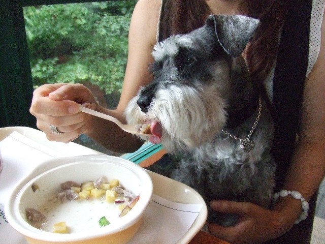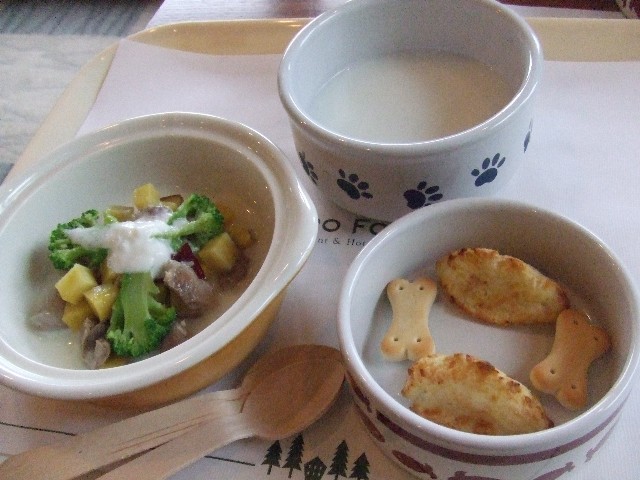 (一番少ない量のワンコ用ごはんを頼み、サンクと半分ずつ食べました)
