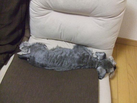 今日は暑くて溜まらないというのに・・・wasabiは床には横になりません。
