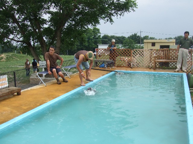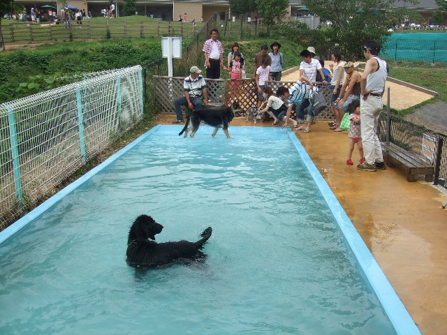 プールに入る前にドッグランで遊びました。