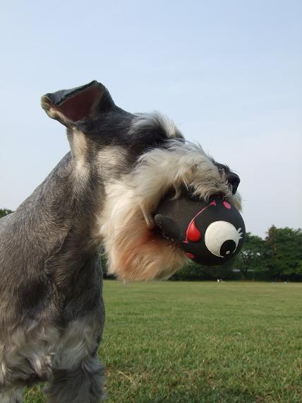 甥っ子がボールを投げると、ちゃんと取ってきて甥っ子の前にボールを落とすwasabi。