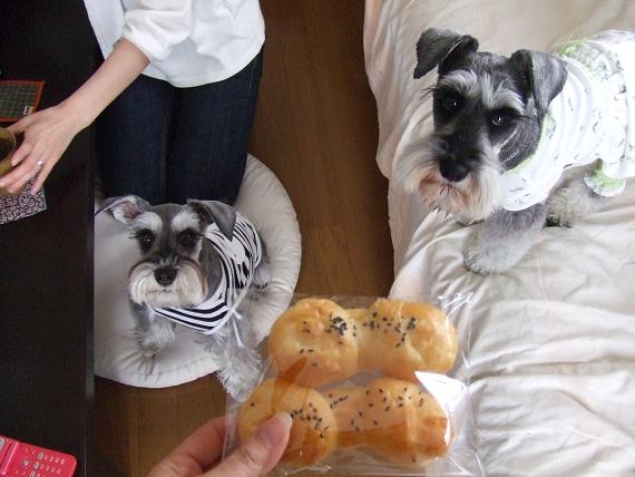 annちゃんとwasabiには、さっきのカフェで買ったワンコ用のパン☆