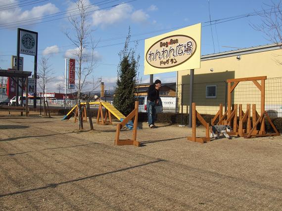 スーパーの駐車場にあるドッグランでwasabiを遊ばせたりしながら待ちました。