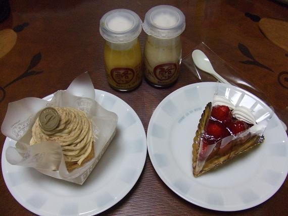 そしてケーキ(イチゴタルト・モンブラン)&プリン(マンゴー)