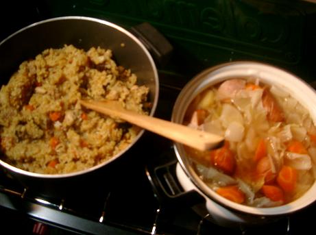 味噌キムチのスープに鶏団子(葱と生姜が効いてるmamaの得意料理)を入れて、後は野菜も沢山。