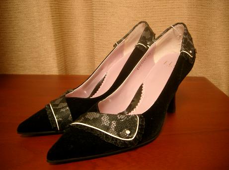 ←2足目は新作の黒のパンプス(生地はベロア)
