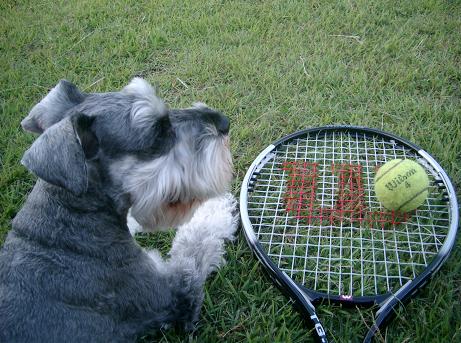 mamaがラケットでテニスボールをビューンと飛ばすと、wasabiが取りに行ってくれるのです。サーブのみのテニスだけど、思いきり打てるので気持ちが良いです!wasabiの走る距離を伸ばす為にわざと遠くまで飛ばすからね~~もしコートで打ってたら3面くらい向こうのコートまで・・・全部アウトなのは間違いなしです!(笑)