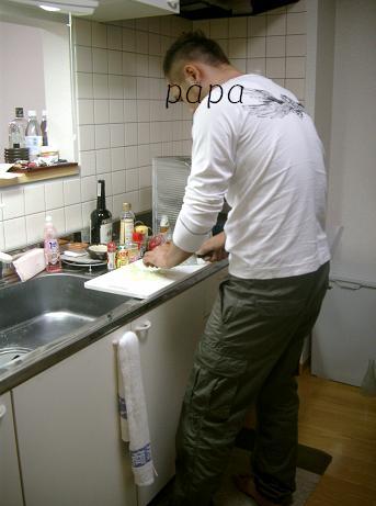 今日の夕食は刺身の盛り合わせとお惣菜を買ってしまったので、特にmamaのする料理はなし!(ご飯を炊くだけ・・笑)でも代わりにpapaさんはキッチンに立ち何か作り始めました。知り合いから教えてもらったというレシピを見させてもらうと・・・「ん~mamaは好きじゃないかも。。」(笑)
