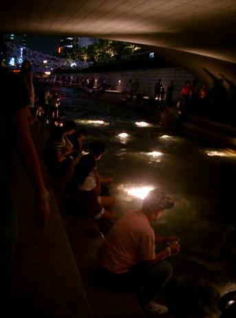 その後はタクシーに乗り、東大門まで移動。東大門には多くのデパートがあり、大体が朝方近くまで営業しているんです。東大門は眠らない街ですよー!!確か前回来たときは朝までホテルには帰りませんでした。(笑)だから今回もそんな予定で、着いてすぐに歩きやすい靴を購入!ヒールからビーチサンダルに履き替えて気合も十分でした。でもね・・・何故かいくつもあるデパートの半分くらいがCLOSEなのです。友達が日本語と英語のごちゃ混ぜ言葉で聞いてみると(笑)・・・この時期(8月20日まで)は韓国の人が旅行に出掛けるので、仕事をお休みするんだって。お盆も休んでしまうなんて信じられない・・・聞いてないよー!!そんなこと雑誌にも書いてなかったもん!!(怒)