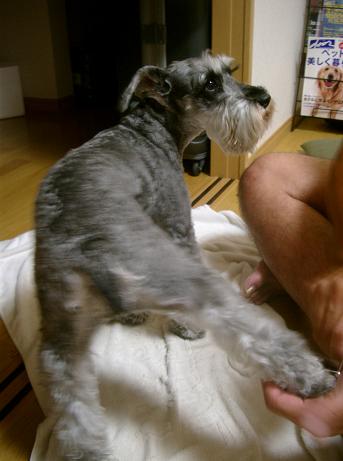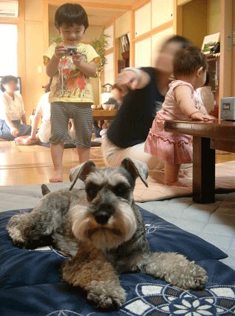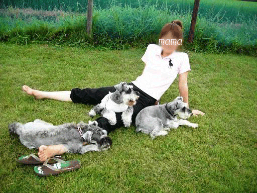 そして10時にはmamaの実家へお線香を上げに行きました。実家では祖母の新盆ということもあり、親戚が集まったり、お坊さんが拝みにきてくださったり・・・。そのお坊さん、お経を唱えている間もとても静かにしていたwasabiを見て、とても褒めてくれました。「シュナウザーって、普通はもっとウルサイですよね?どこかにしつけをお願いしたんですか?」だって!(やっぱりシュナってそういうイメージ?笑)ちなみにお坊さんはエアデールテリアを飼ってんだって~!!いつか一緒に遊べたらいいね♪