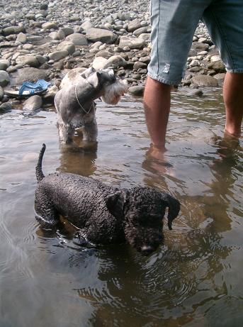 ペスとwasabi・・・川に向って一目散です