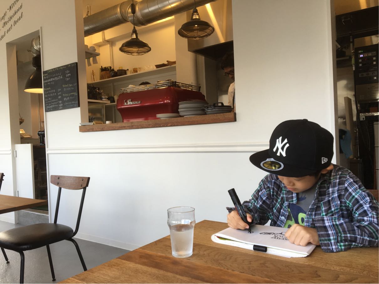 料理が来るまでは、お決まりのお絵描きタイム!
