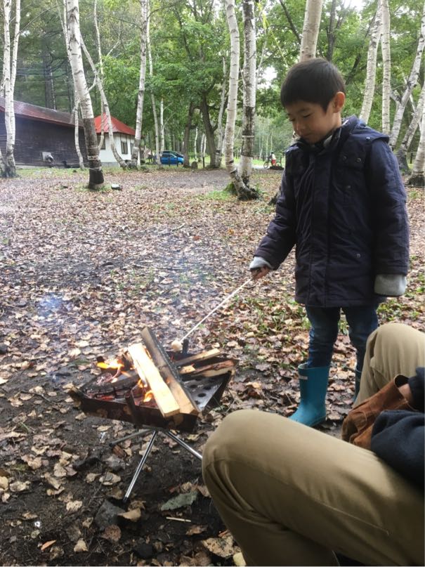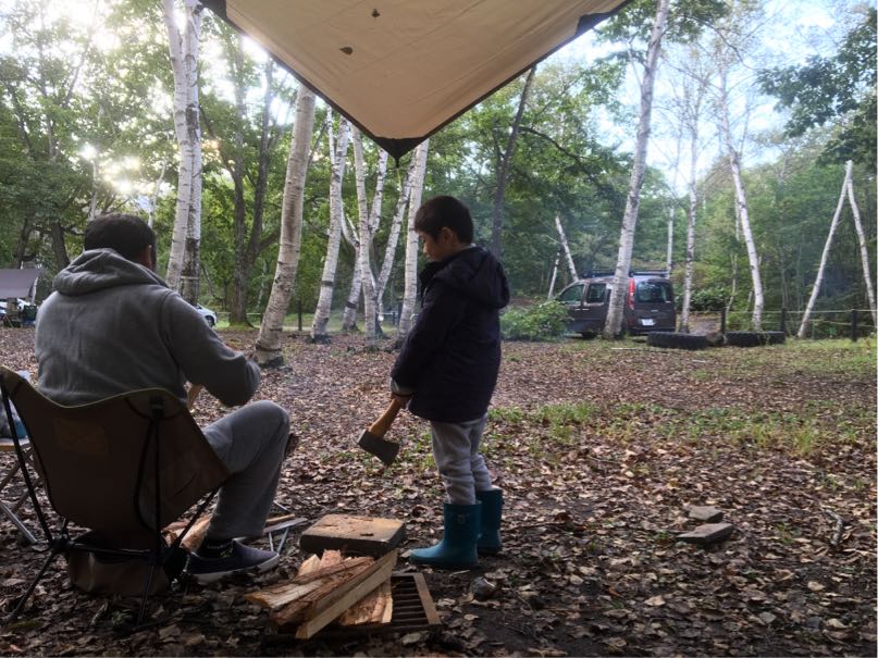 焚き火越しに薪割りしている2人の姿に朝から癒されました。