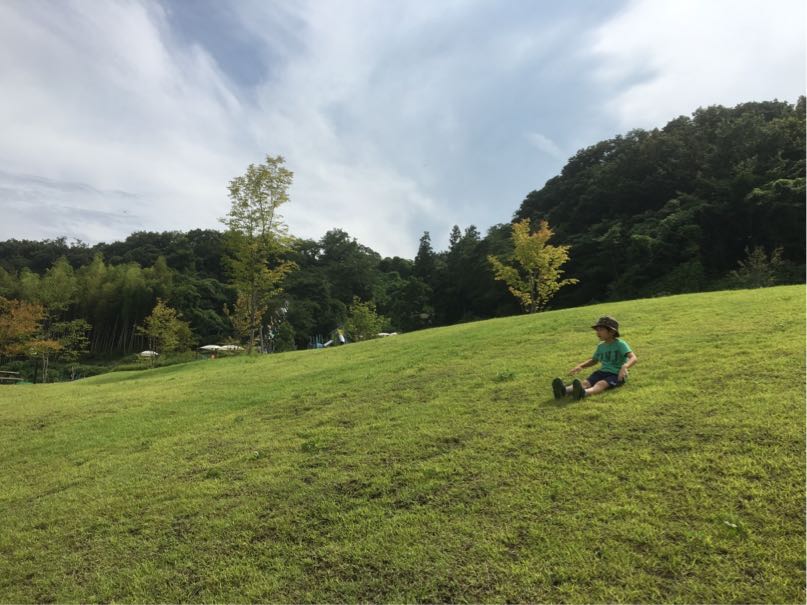 芝生の坂をグルグルと回りながら落ちたりしてました。