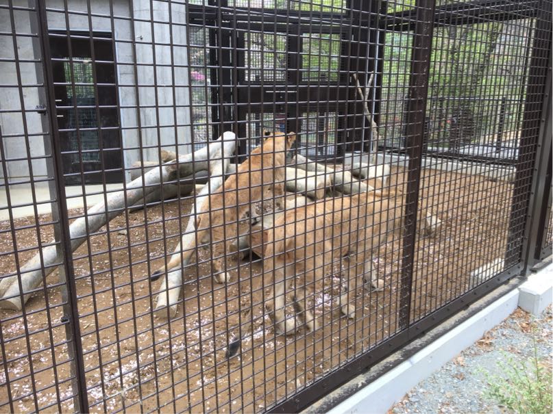 新しいライオン舎は正面は柵で、裏はガラス張りの素敵な建物でした。