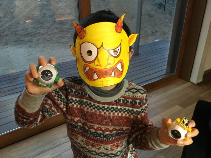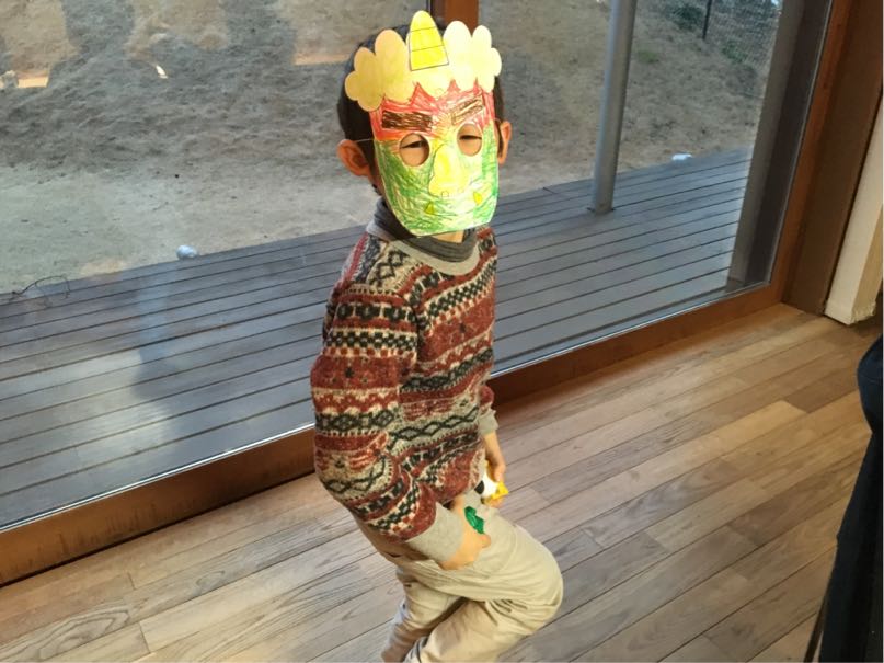 こっちのお面はsheetaが幼稚園で作ってきたやつです。