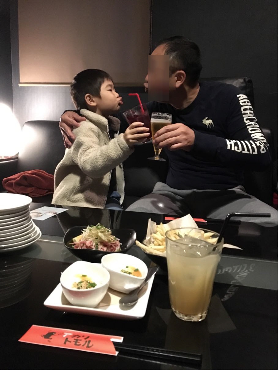 個室に通してもらえたので、ふざける2人。