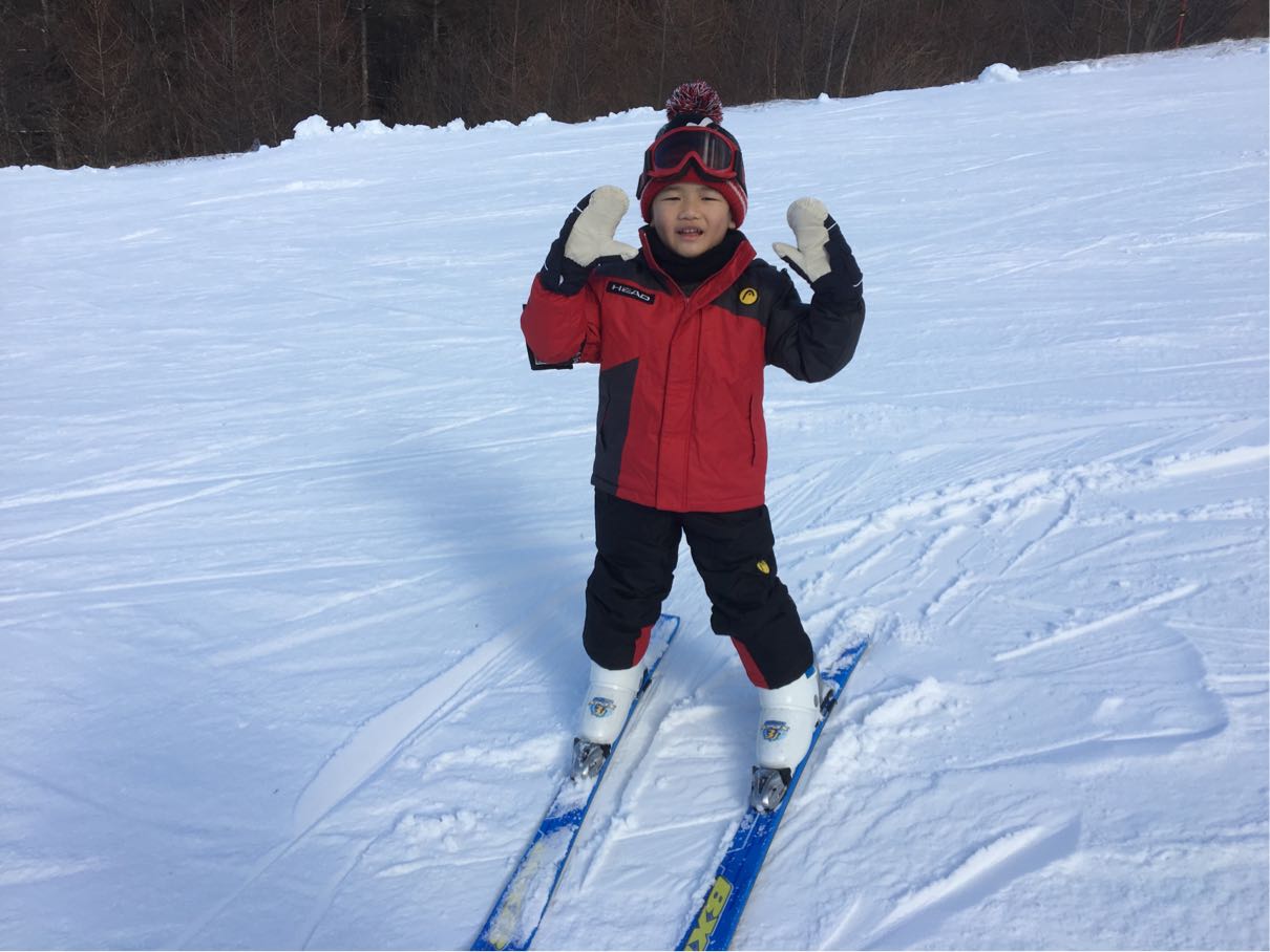 初めてちゃんとしたスキー靴を履かせた割に、
