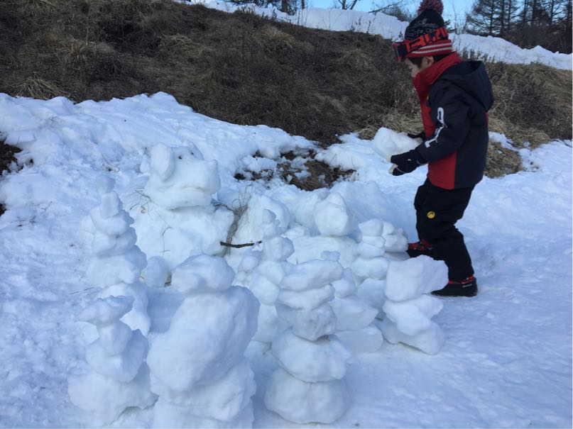雪だるまを作りたくても、カッチカチの雪しかないので、