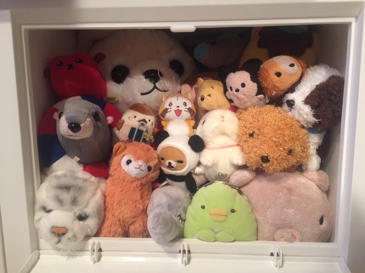 ぬいぐるみは全部扉つき収納の中に入れてもらってます。