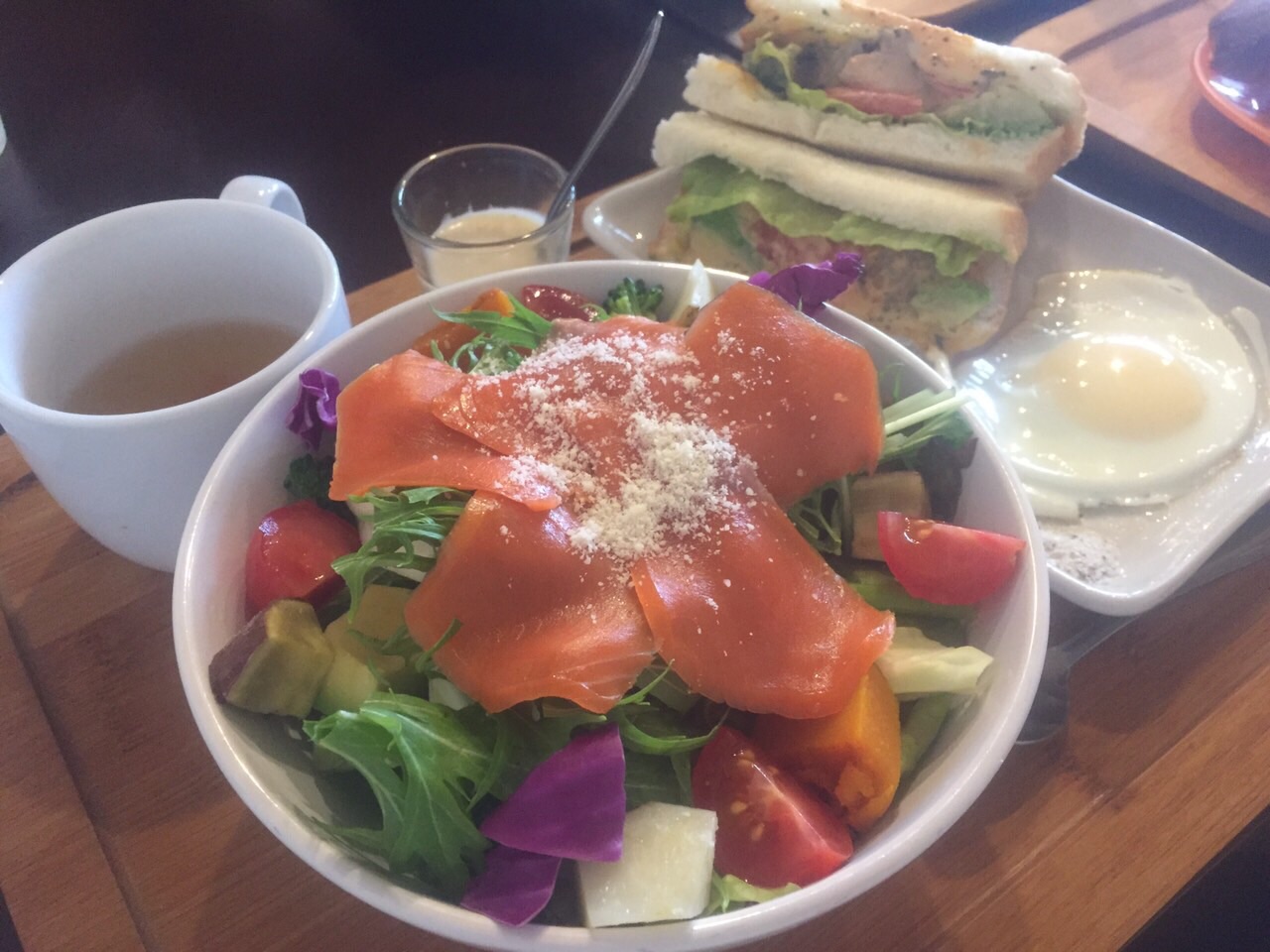 先にアボカドサーモンサラダを食べたら、