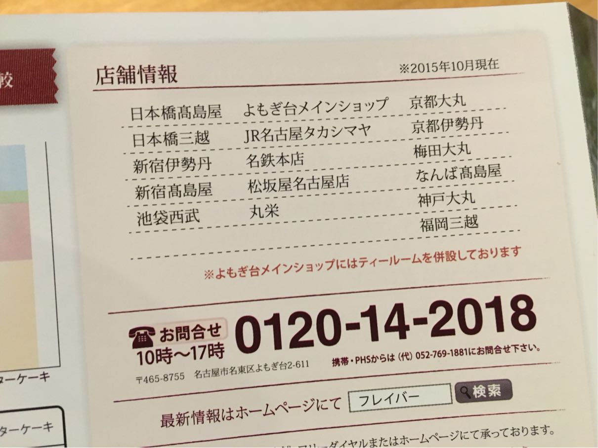 パンフレットに載っていた店舗情報を見ると、