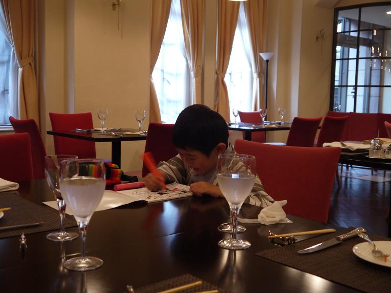 2時間の食事に飽き始めたsheetaはお絵かき。