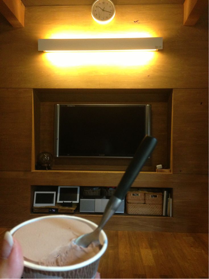 TVもつけず、1人で静かにアイスクリームを。