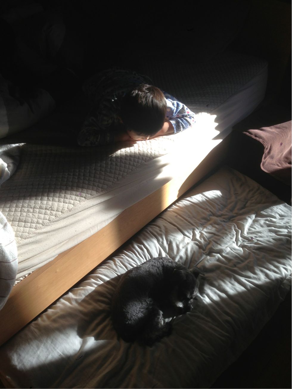 wasabiもsheetaも朝ごはんを食べ終わってからの2度寝。