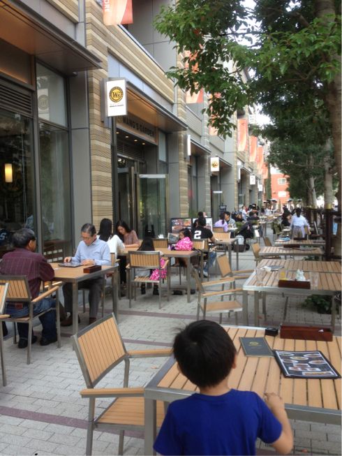 お店は違ってもテラス席のテーブルとイスが統一されているので、