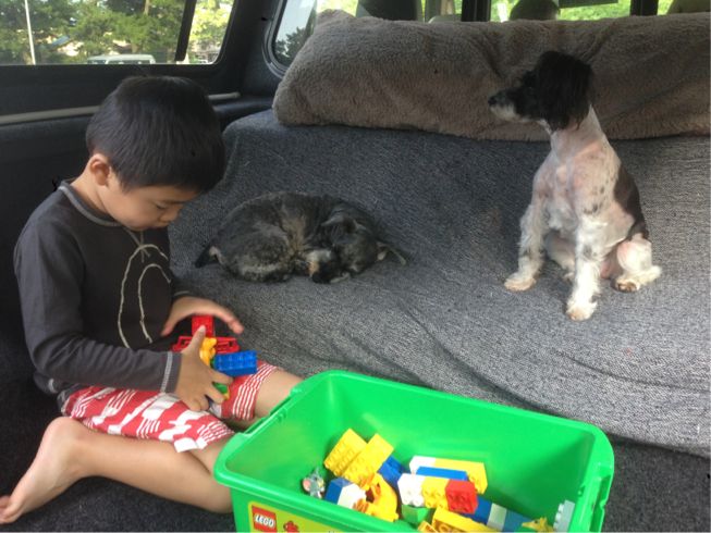 車でウトウトしたり、暑くなったら近くの売店へ移動して、